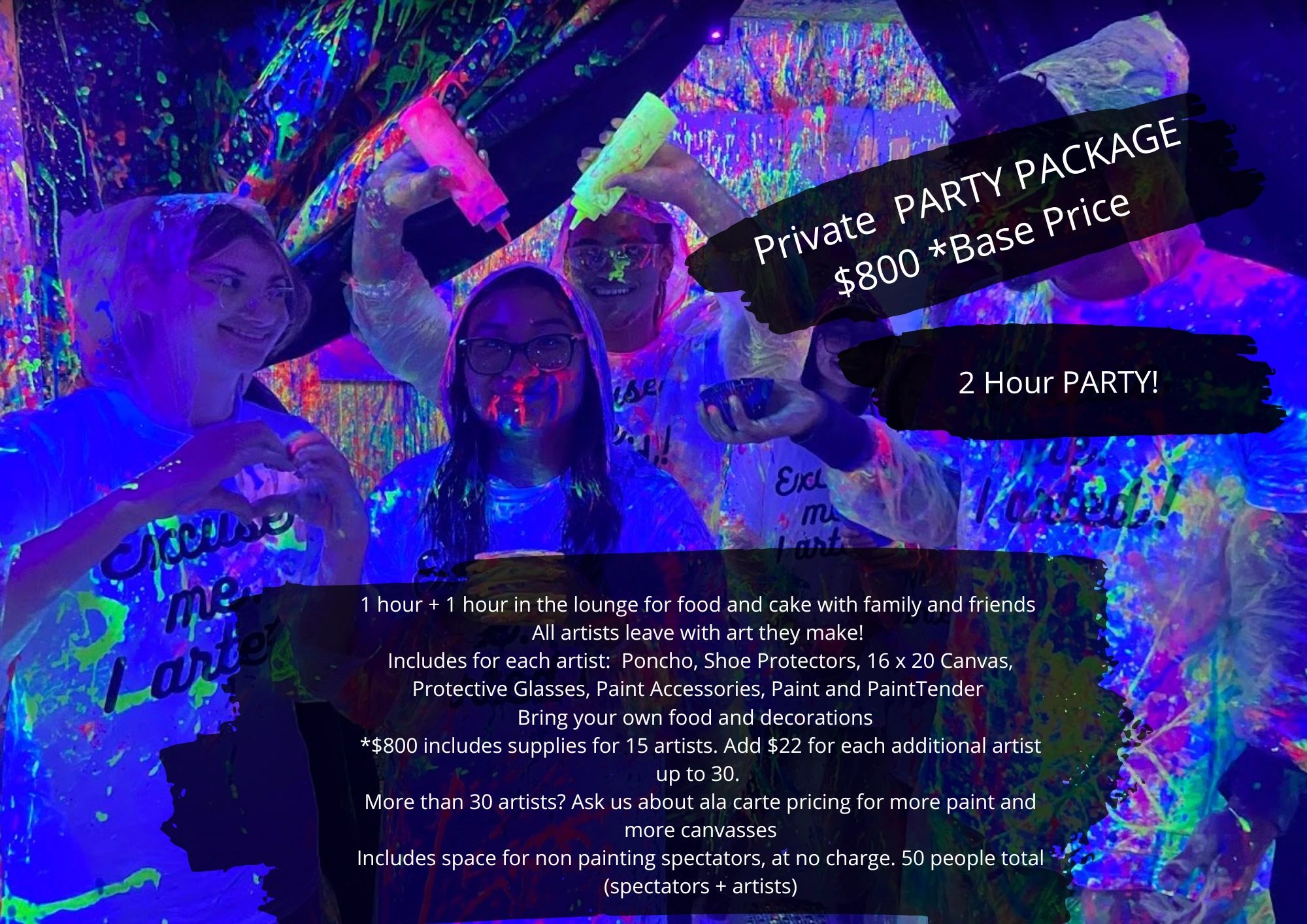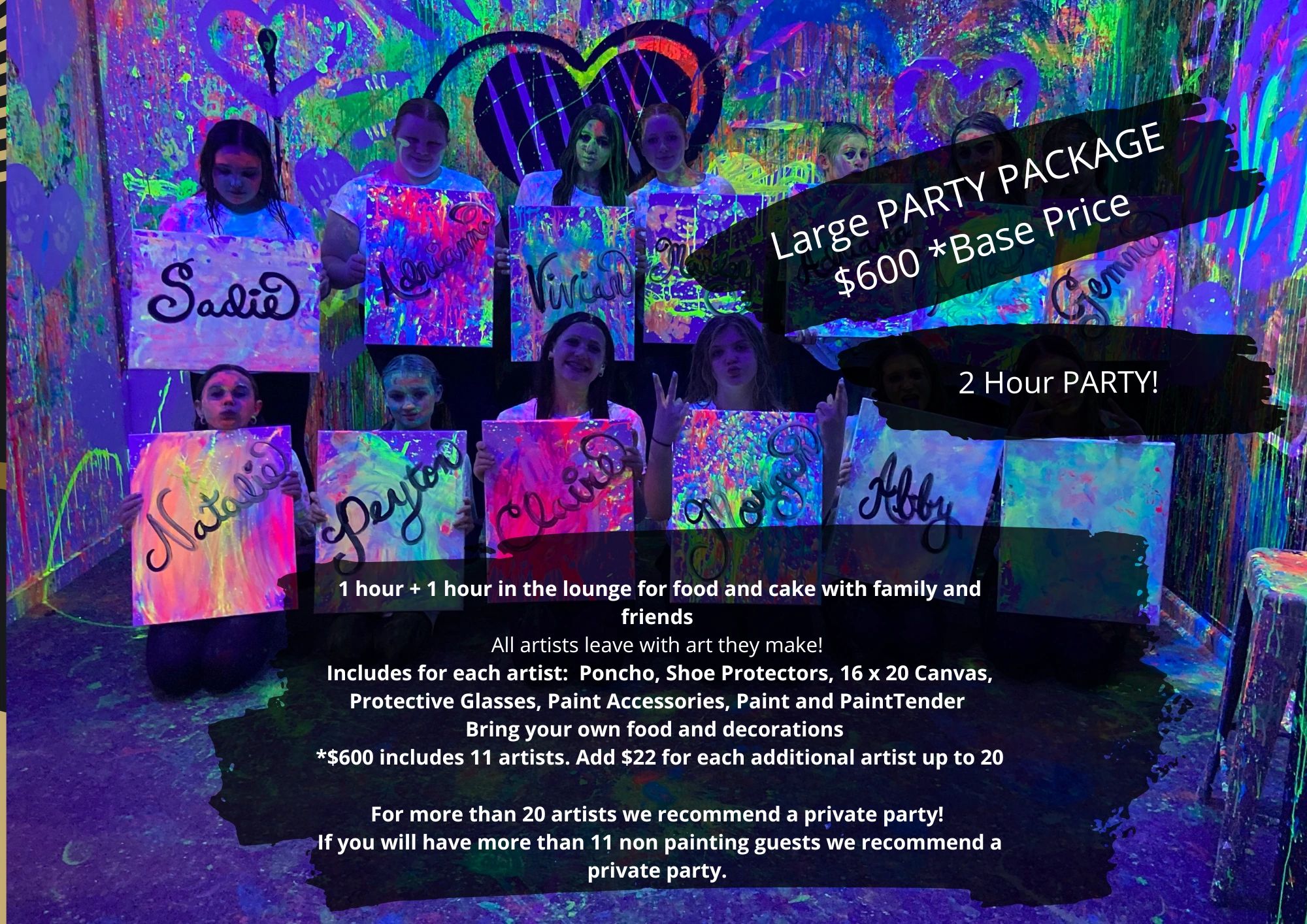 Book your 2 hour party on any Wednesday or Thursday for 10% off!